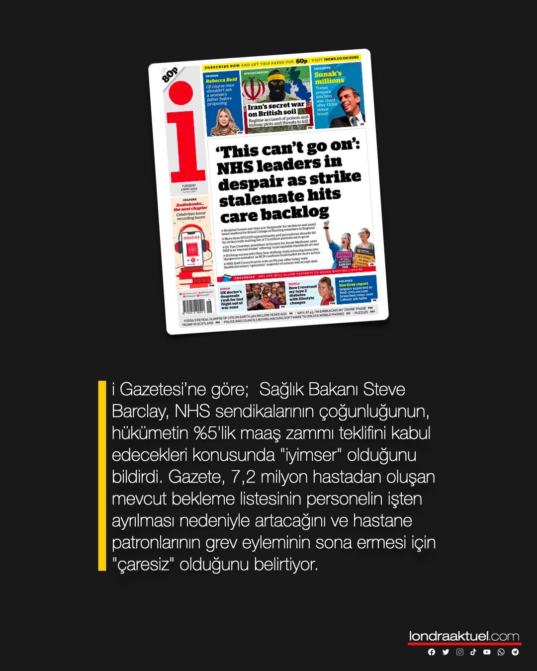 2 Mayıs Salı: İngiltere gazetelerinden öne çıkan manşetler