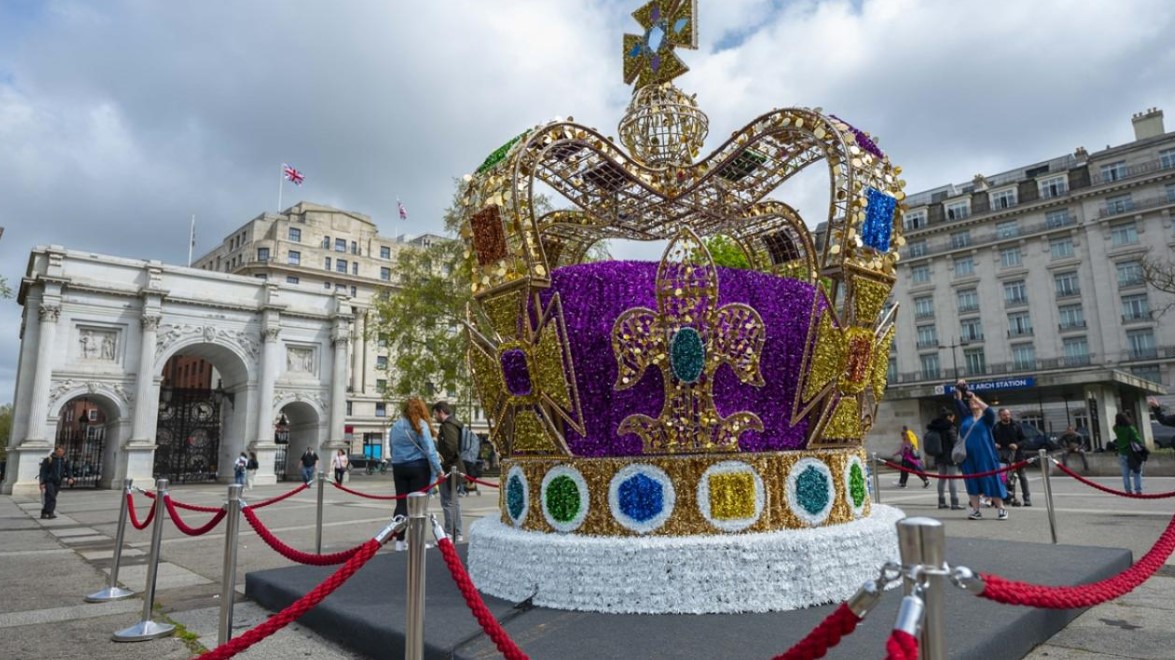 Taç giyme töreni kutlamaları kapsamında başkent Londra`da 5 metrelik dev bir Kraliyet Tacı maketi kuruldu.